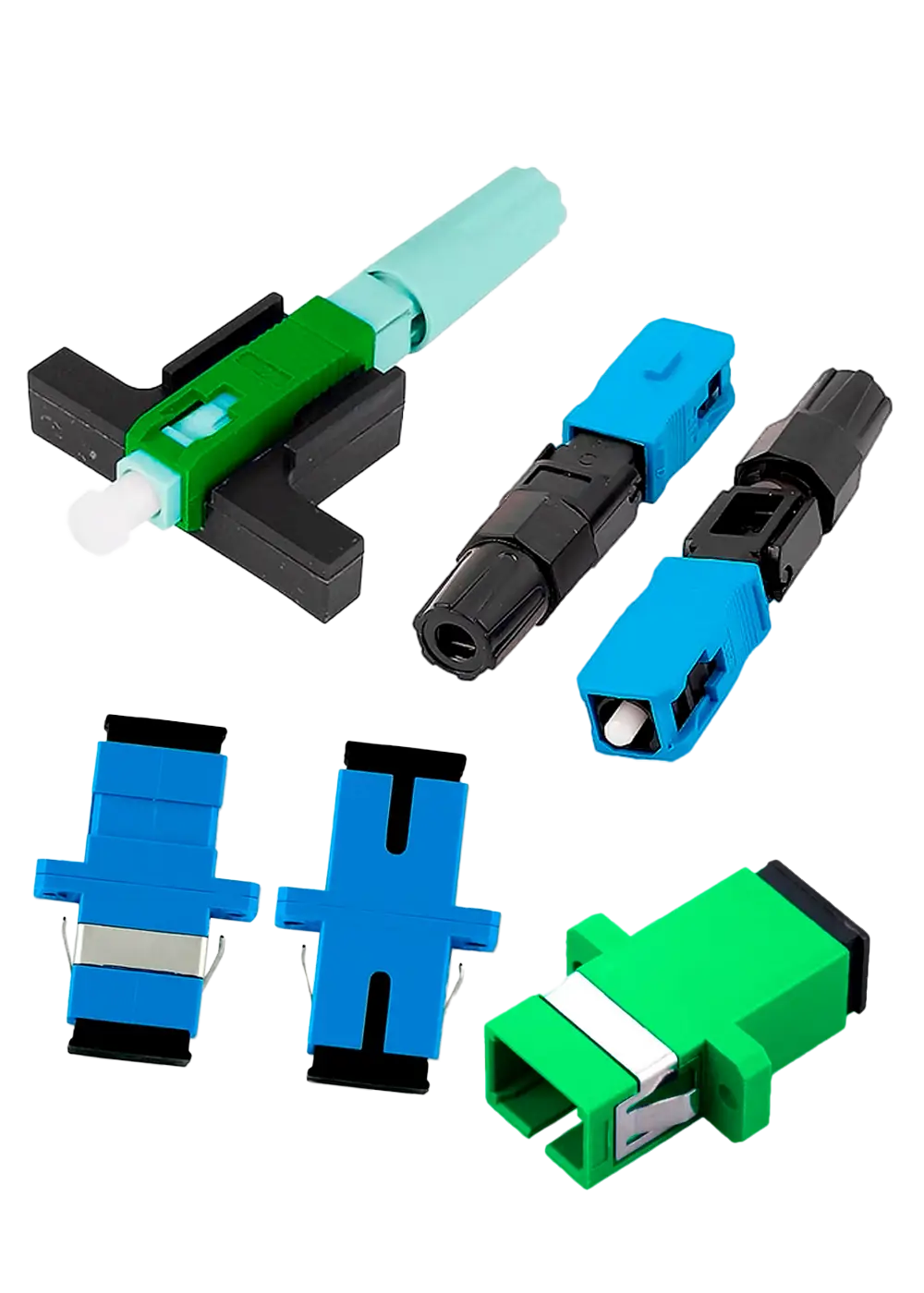 - Conectores de fibra óptica (SC/APC, SC/UPC, LC, etc.)